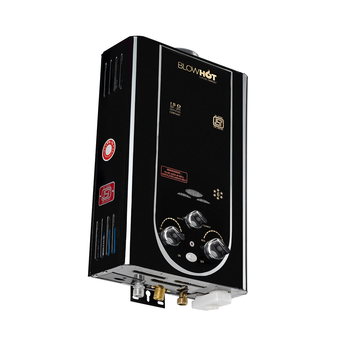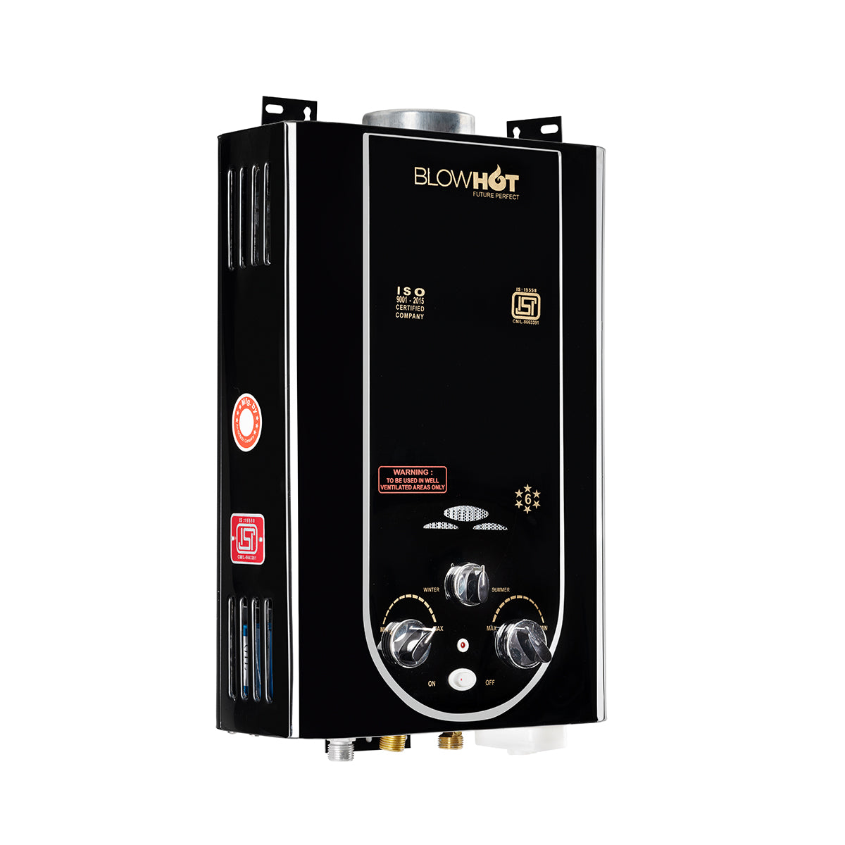 Thermostat for high temperature cut off which prevents dry burning.Heavy Copper heat exchanger - 1 KG.Flame failure safety device: If in any case, the flame goes off, the gas supply cuts off immediately. ISI Certified