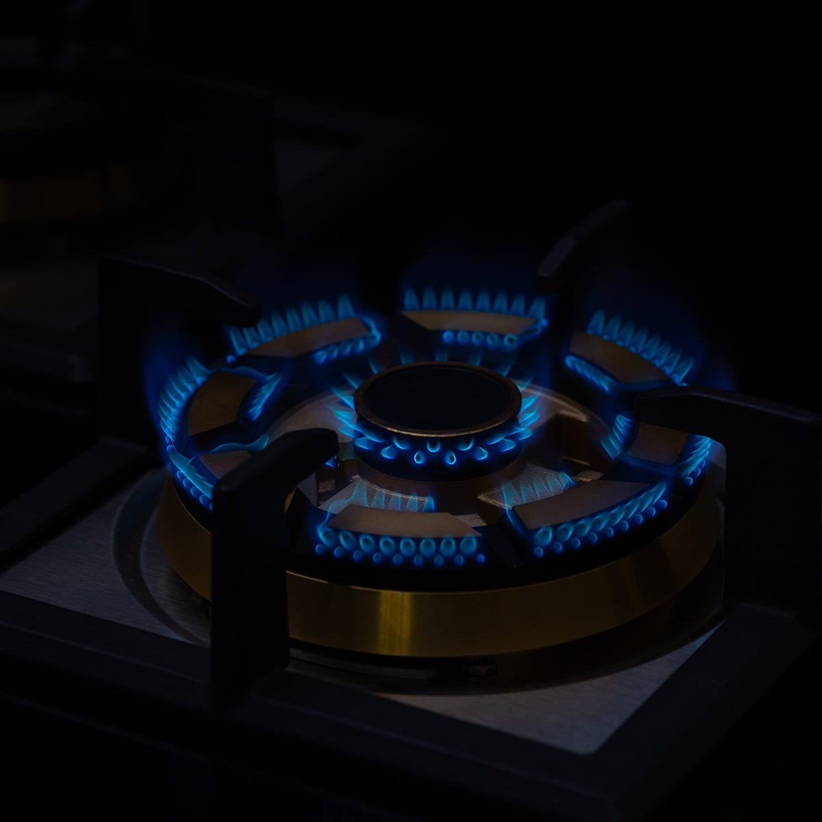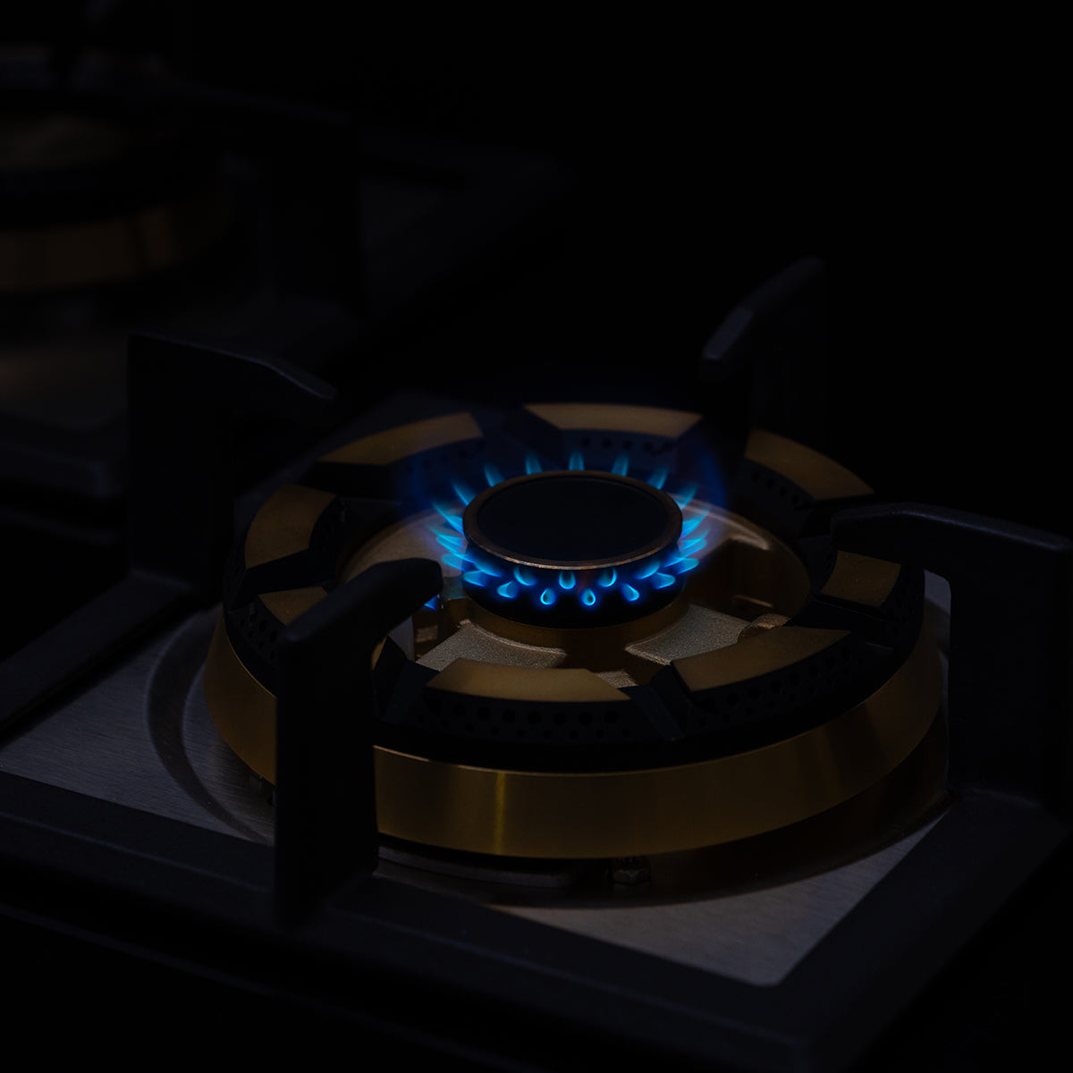 Featuring heavy brass burners and a robust brass base, this gas hob ensures consistent heat distribution for efficient and even cooking.