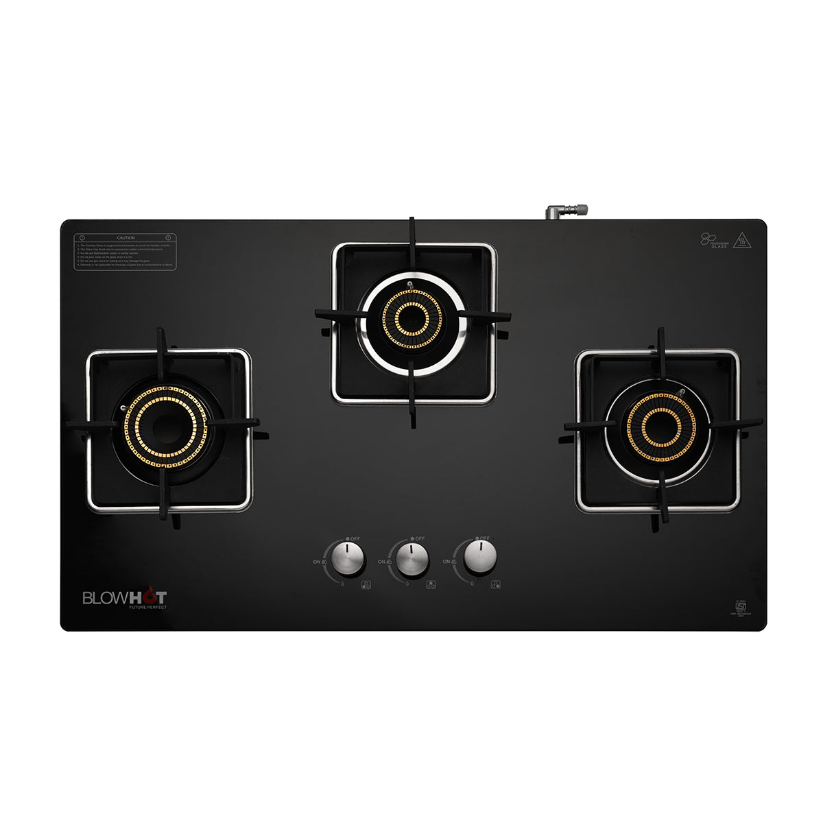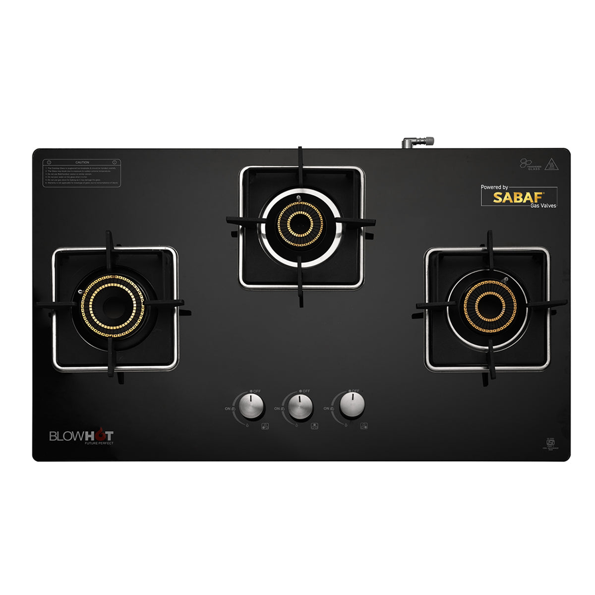 The Quartz 3B Auto Gas Stove is built to cater to the diverse needs of your kitchen. Featuring a hybrid design with a toughened glass top, the stove not only adds a sleek, contemporary touch to your cooking space but is also easy to clean and maintain. The heavy brass tornado burners, including a dedicated jumbo burner, offer superior heat distribution and efficiency, perfect for a variety of cooking styles. The uniquely designed top knobs ensure smooth and precise flame control, while the heavy square pan support provides stability and safety for all cookware types.