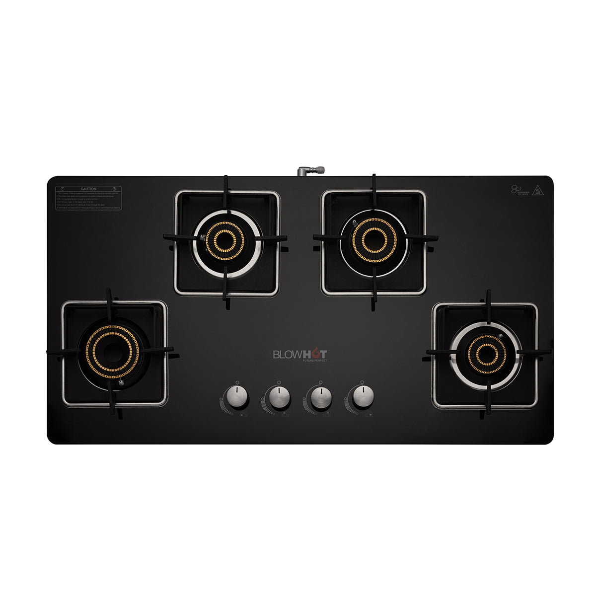 The Quartz 4B Auto Gas Stove is built to cater to the diverse needs of your kitchen. Featuring a hybrid design with a toughened glass top, the stove not only adds a sleek, contemporary touch to your cooking space but is also easy to clean and maintain. The heavy brass tornado burners, including a dedicated jumbo burner, offer superior heat distribution and efficiency, perfect for a variety of cooking styles. The uniquely designed top knobs ensure smooth and precise flame control, while the heavy square pan support provides stability and safety for all cookware types.